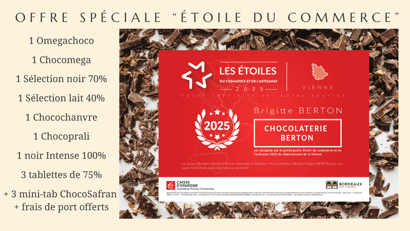 Lot exceptionnel « Etoile du commerce et de l’artisanat » de 10 tablettes de 100g, à 74€ au lieu de 90,50€ :